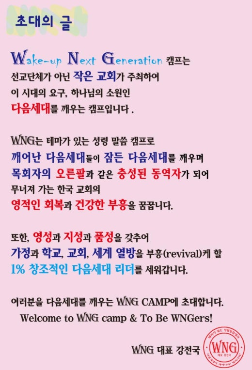 Å׸¶°¡ ÀÖ´Â ¼º·É¸»¾¸ Ä·ÇÁÀÎ WNG Ä·ÇÁ¸¦ ÅëÇØ Çѱ¹±³È¸ÀÇ